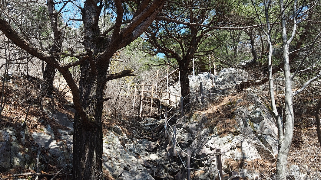 나무 계단을 만나게 되면 거의 정상이 가까워졌다는..