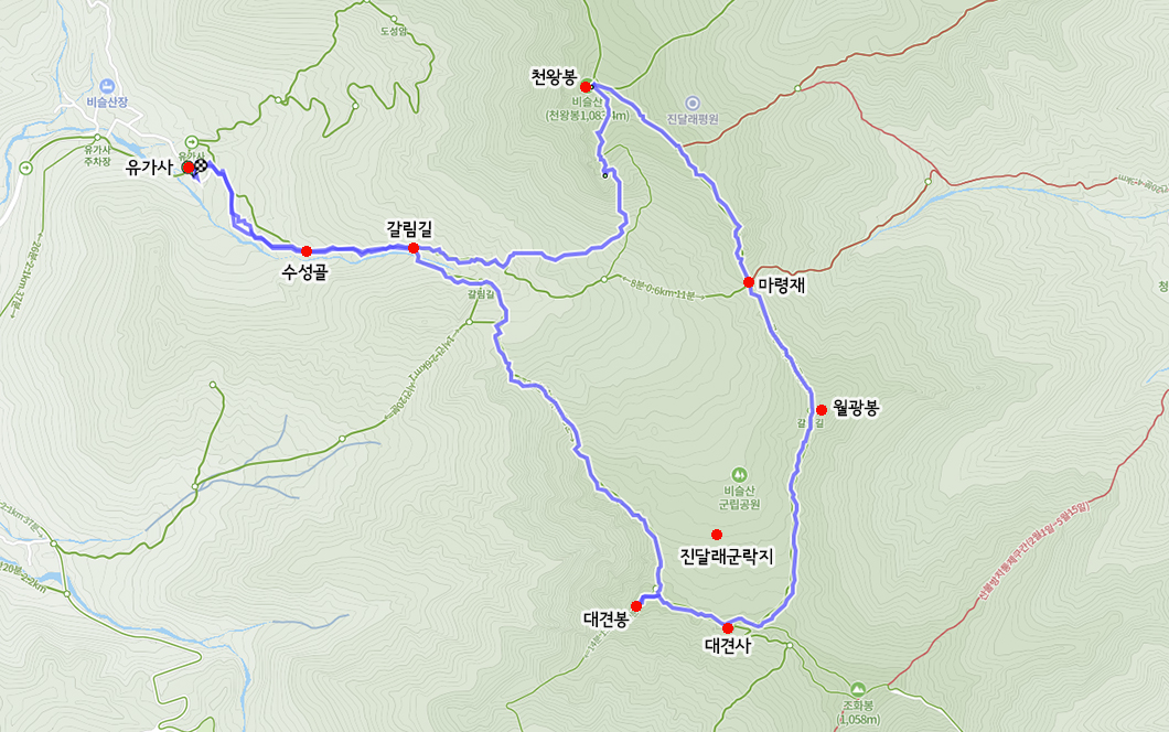 산행 코스 : 유가사 - 수성골 - 천왕봉 - 마령재 - 대견사 - 대견봉 - 유가사 (원점회귀)