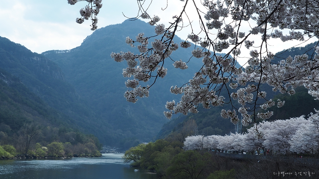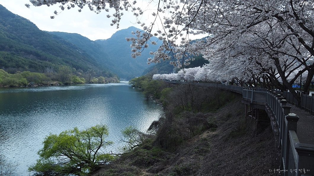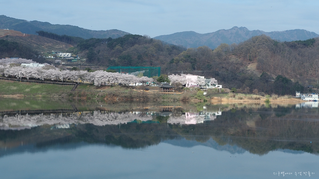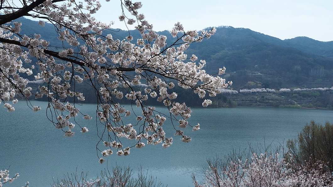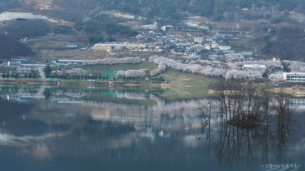 건너편으로 회양관광단지의 벚꽃이 마주 보입니다.