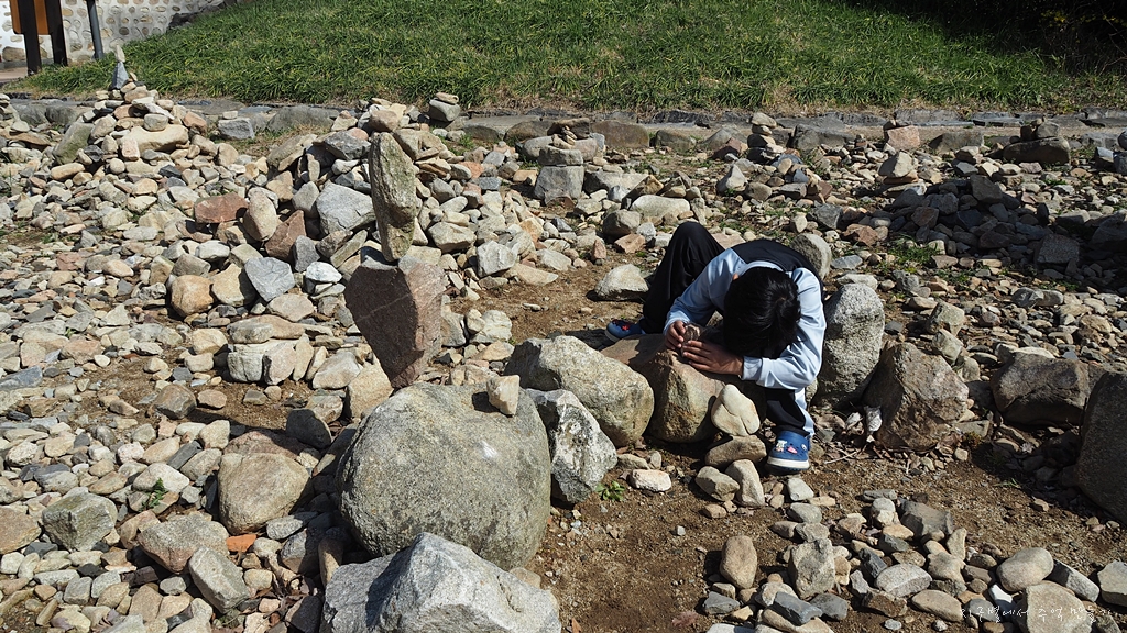 청허정으로 올라가기 전 돌탑 체험장이 있어 지율 군.