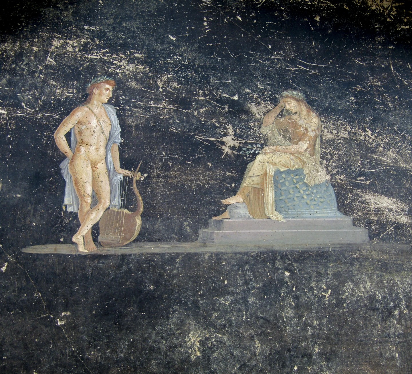 이 유적은 고대 폼페이 발굴 지역과 발굴되지 않는 지역을 나누는 곳에서 발견된 것인데 옛 주택의 연회장에 그려진 것으로 오는 손님들을 즐겁게 하고 대화의 물꼬를 트기 위해 고안된 벽화로 짐작이 됩니다.