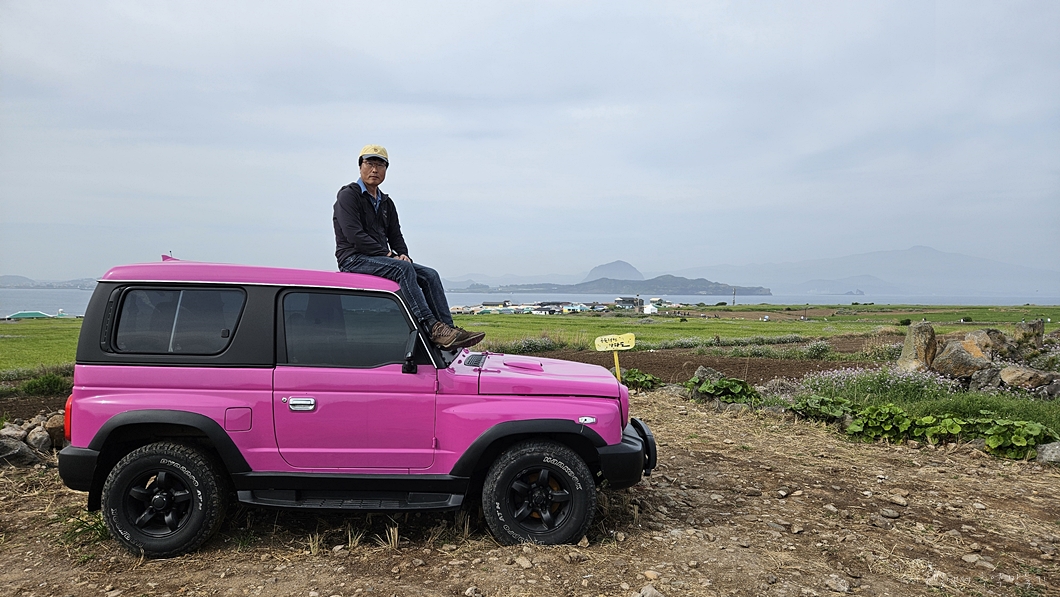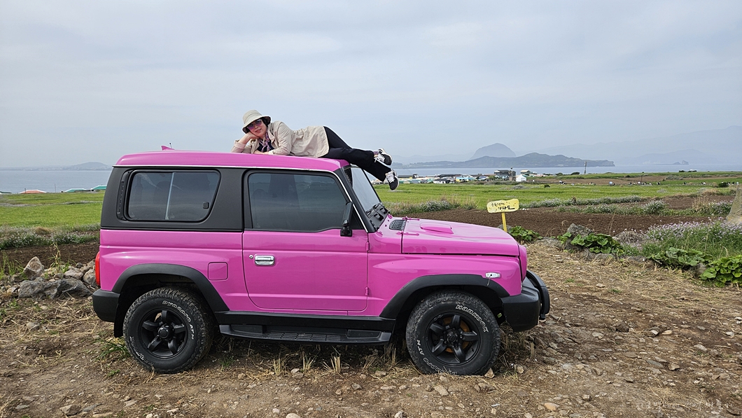 전망대에서 그리 멀지 않은 곳에 이런 핫핑크 짚이 한대 있답니다.
