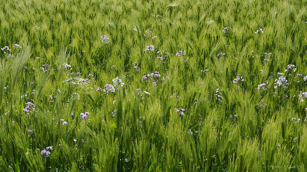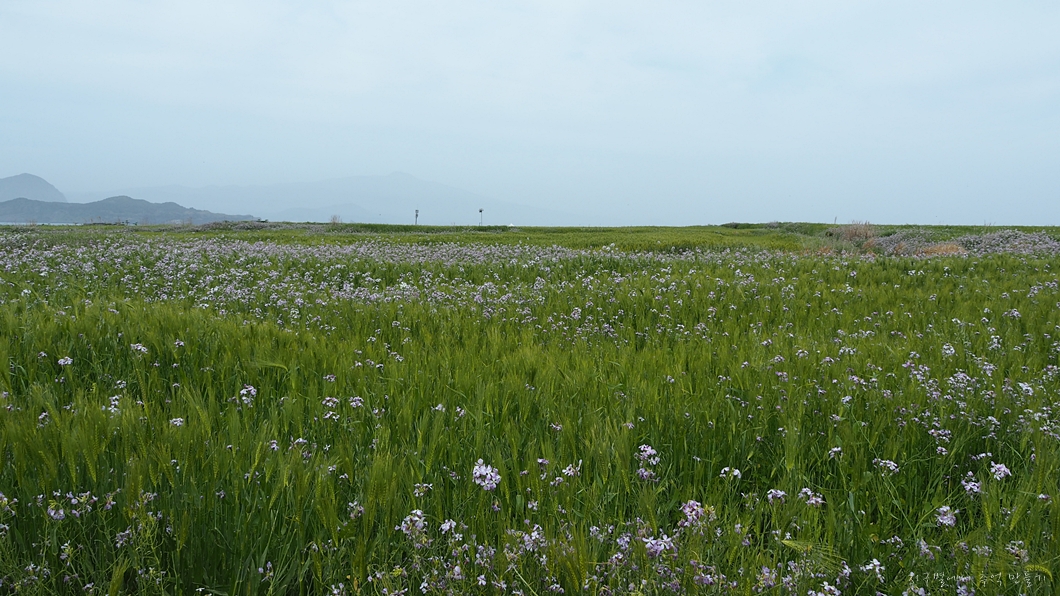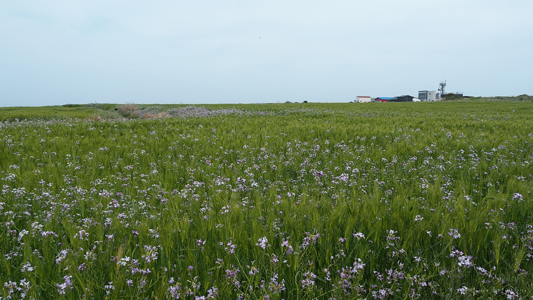 갯무꽃이 청보리와 참 잘 어울립니다.