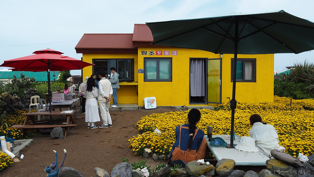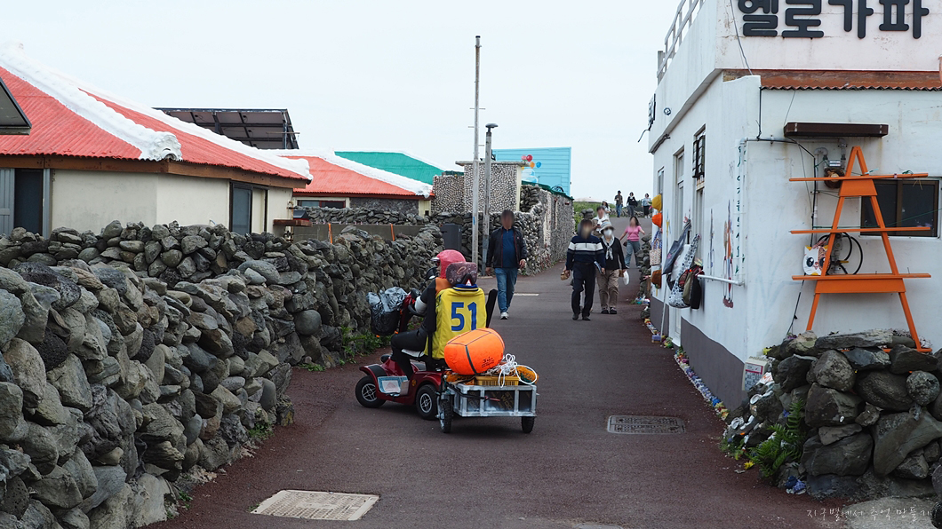 앞에 어느 해녀분이 일을 마치고 집으로 들어가고 있네요.