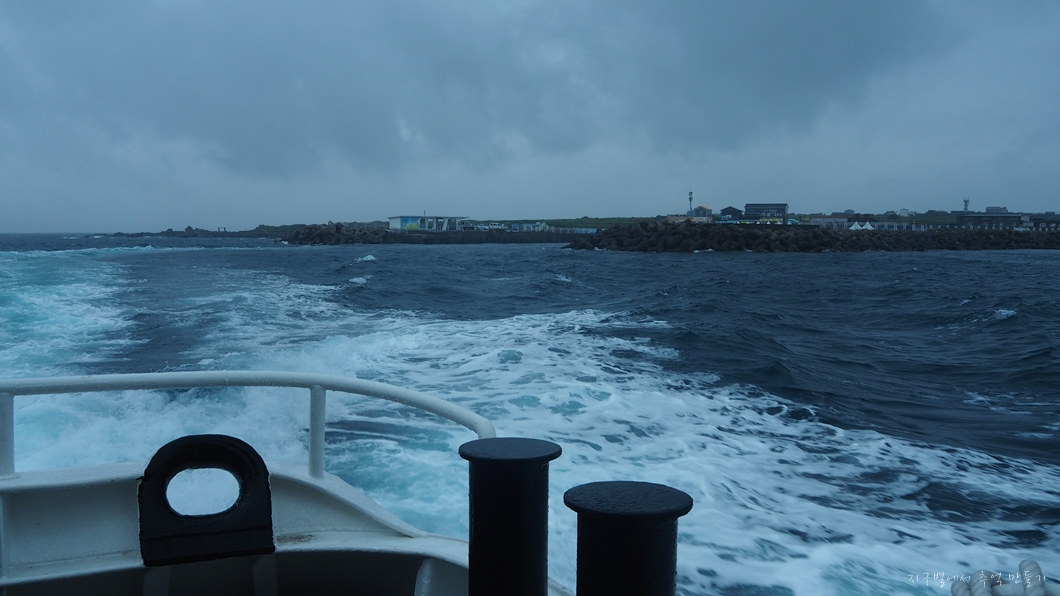 비바람 몰아치는 바다를 헤치고 섬에 남아있는 외부인을 태우러 온 배는 다시 거친 파도에 일렁이며 뭍으로 우리를 데려다주었답니다.
