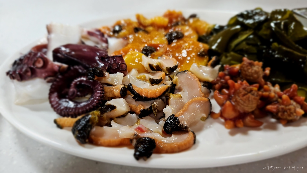 아침에 도착하여 낮술 참으로 먹은 것인데 모두 해녀분들이 잡은 것이라 합니다.