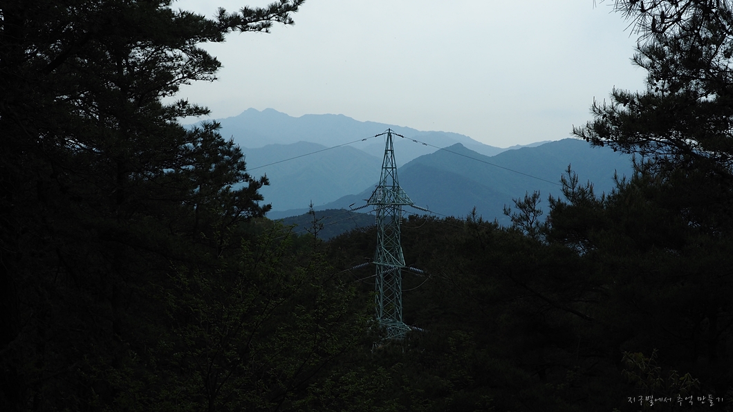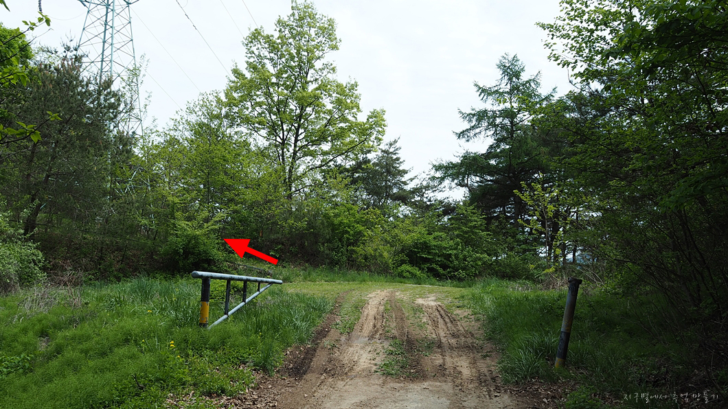 위 화살표방향 좌측의 철탑 옆 산길을 5분 정도 오르면 명품 소나무를 만나게 됩니다.