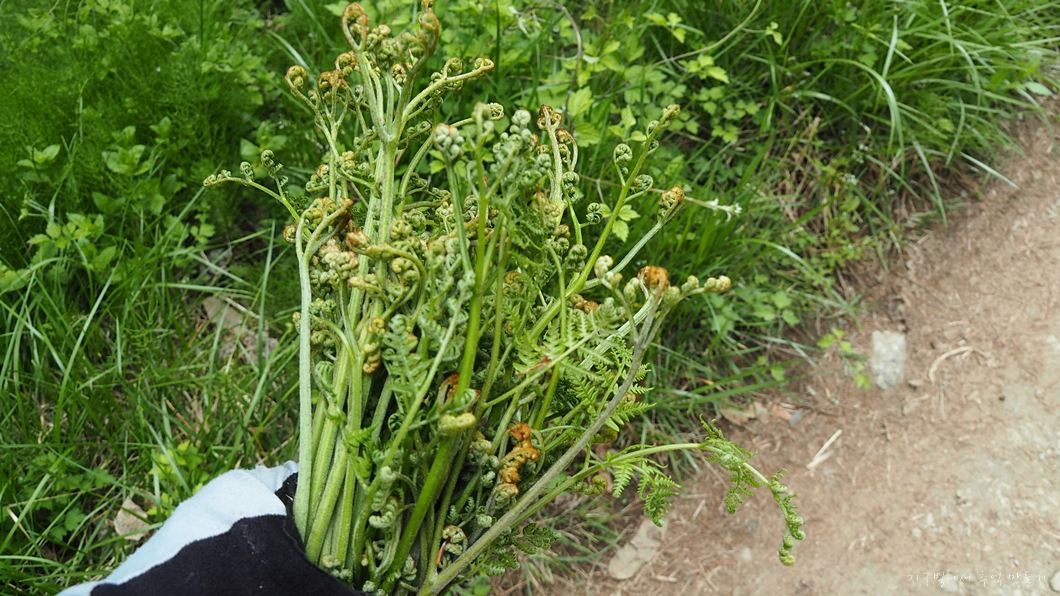 고사리가 하나씩 보이길래 몇 움큼 꺾었답니다.