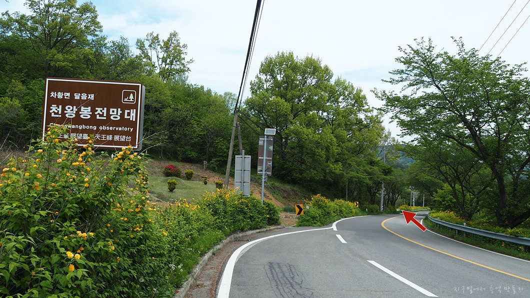 달음재에서 차황 쪽으로 50여 m 도로를 따라 내려가다가 좌측 임도를 따라 들어가면 됩니다.