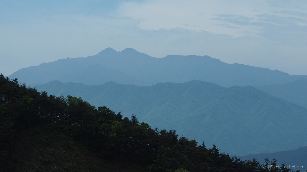 두 개의 봉우리가 비슷한 높이로 보이는데 좌측이 정상이고 우측이 중봉입니다.
