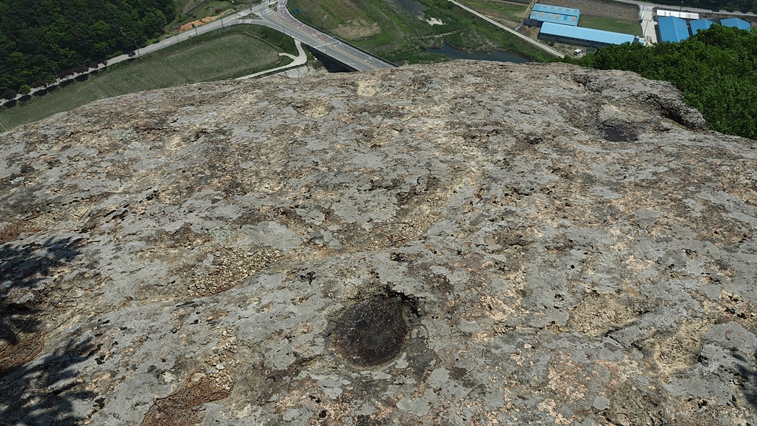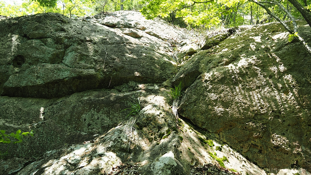 상사봉이 건너 보이는 암벽 위에는 커다란 발자국처럼 생긴 구뎅이가 몇 개 보이는데 공룡 발자국이라고 우기면 될 것 같습니다.