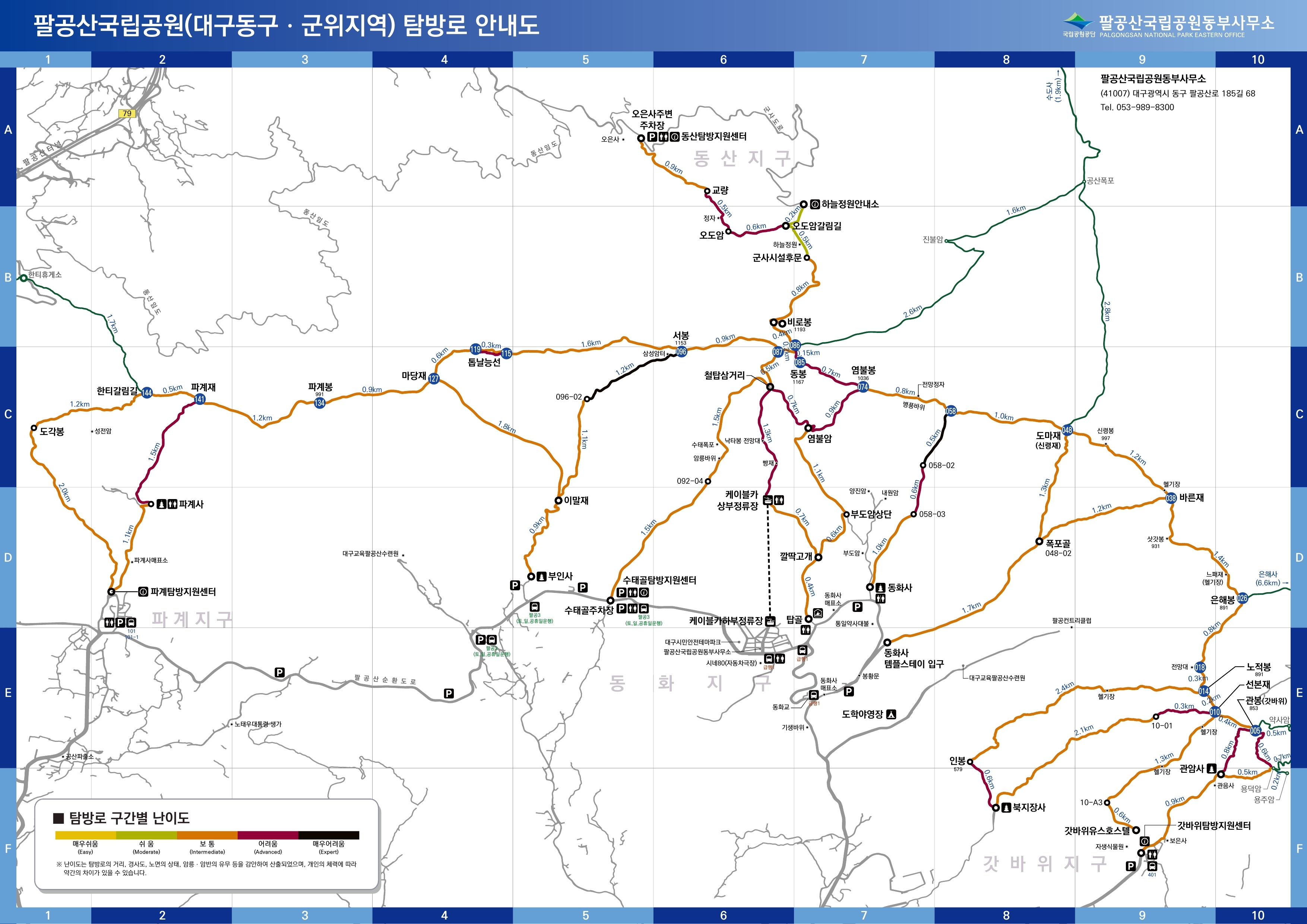그동안 팔공산을 오르던 숱한 샛길 등산로가 정비가 되고 지정된 등산로만 그려져 있습니다만 앞으로는 이 지도에 그려진 등산로를 따라 올라야 될 것 같네요.