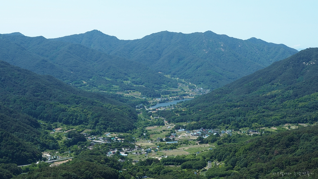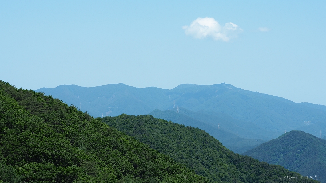 그 왼편으로는 며칠 전에 다녀온 용지봉 대암산 능선이 보이구요.