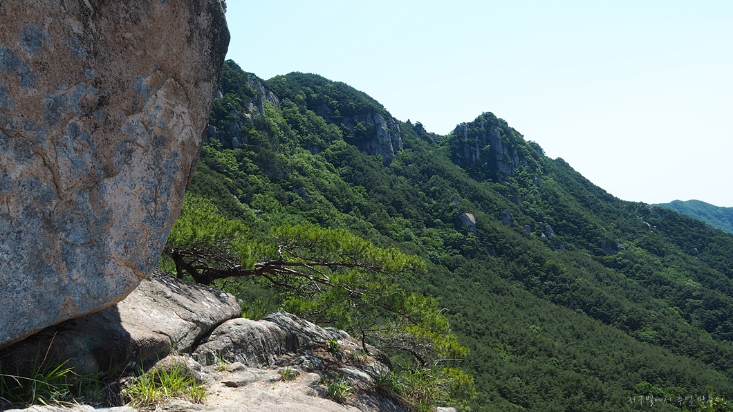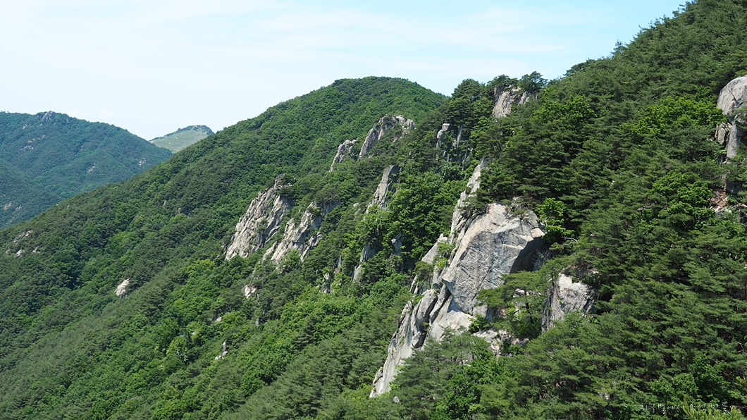 구룡산으로 이어지는 병풍바위 암릉 능선.