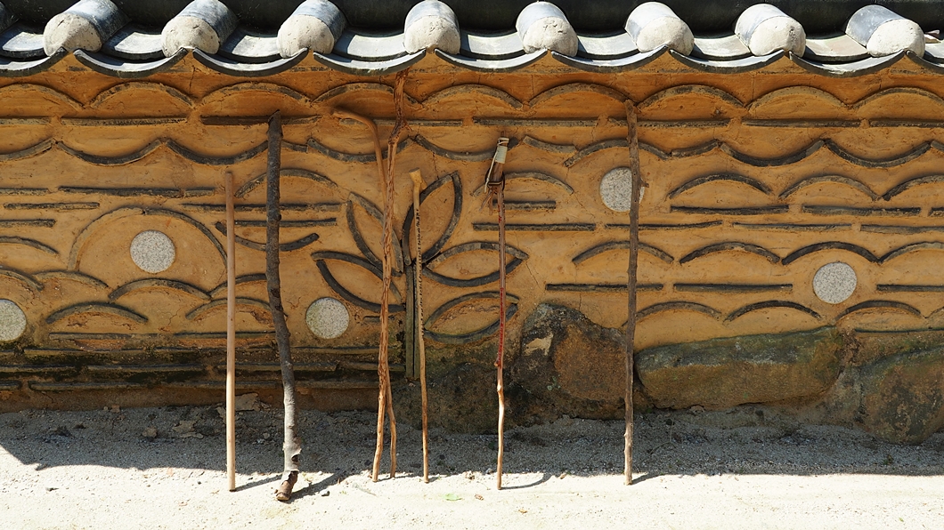 멋스러운 지팡이들이 세워져 있네요.