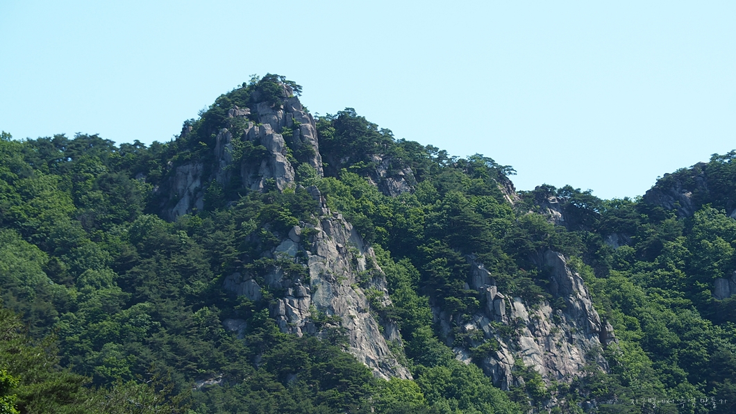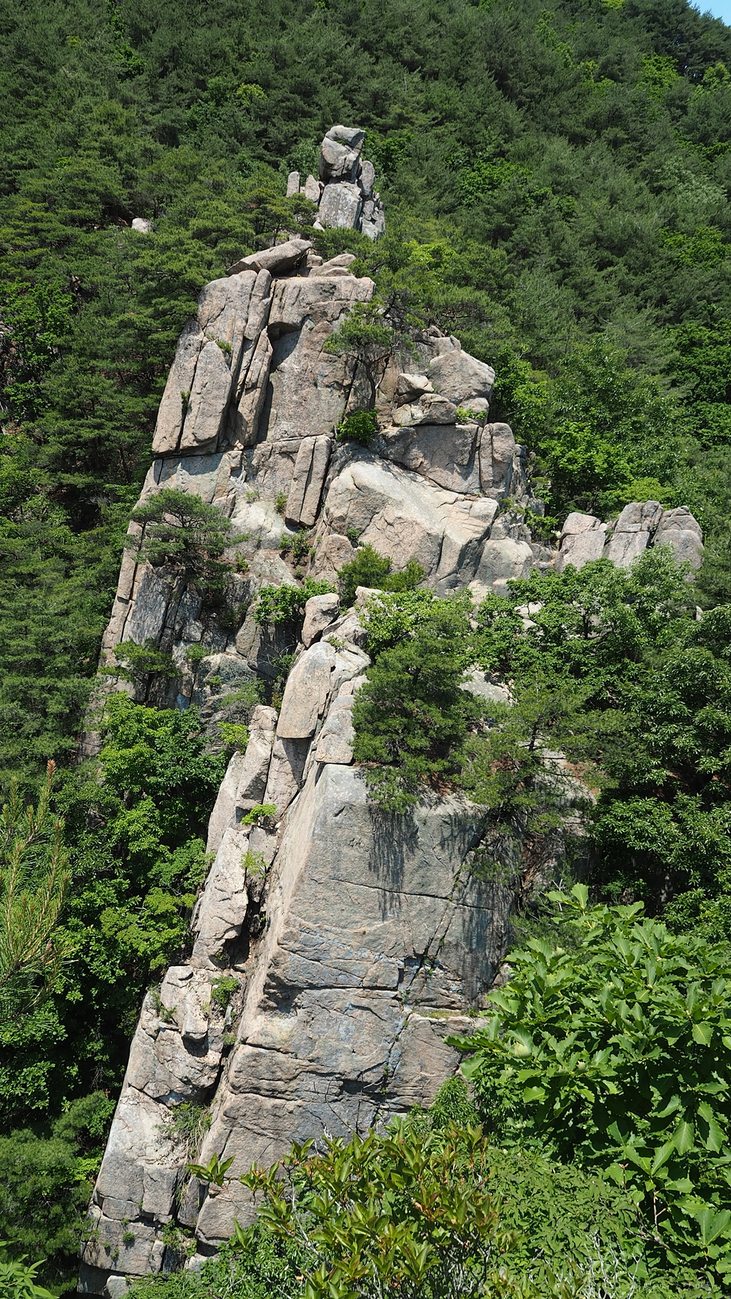 아래에서 올려다보는 병풍바위의 가장 왼편 암봉입니다.