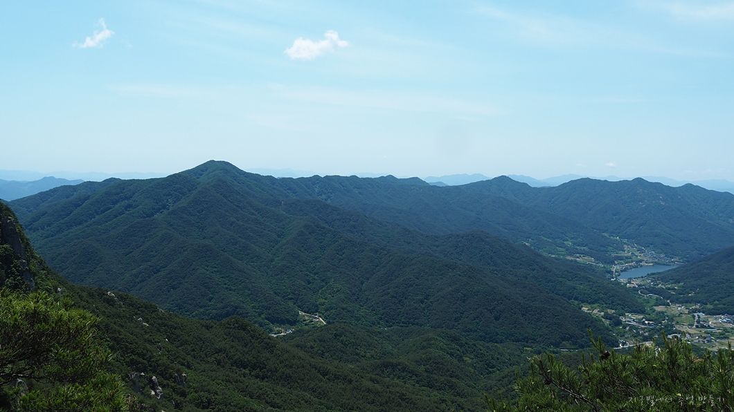 좌측이 비슬산이고 중상으로 청도의 남산과 화악산, 우측으로는 멀리 영알그리메가 펼쳐지네요.