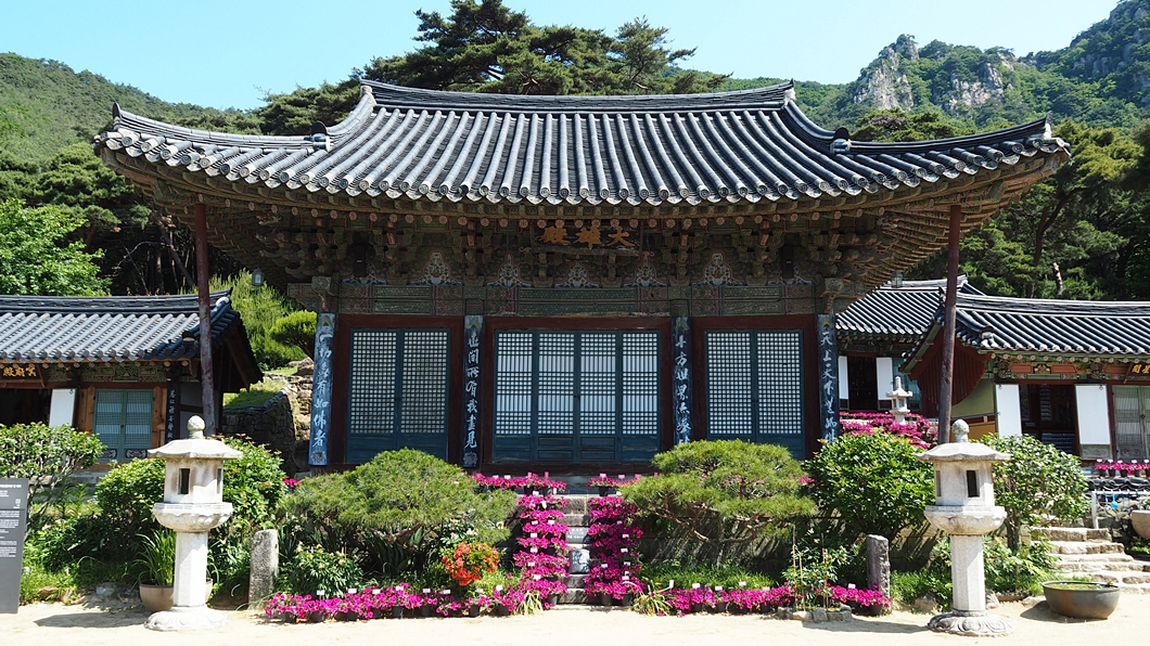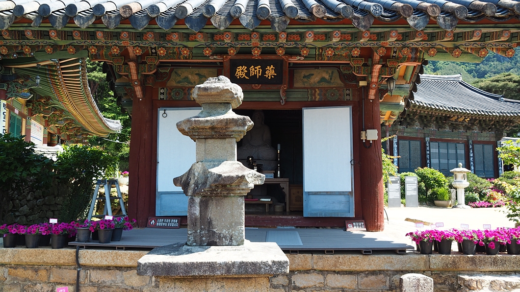 이곳 대웅전도 보물, 안에 모신 부처님도 보물, 관음보살 벽화도 보물, 명부전 목제 부처님도 보물, 약사전도 보물..