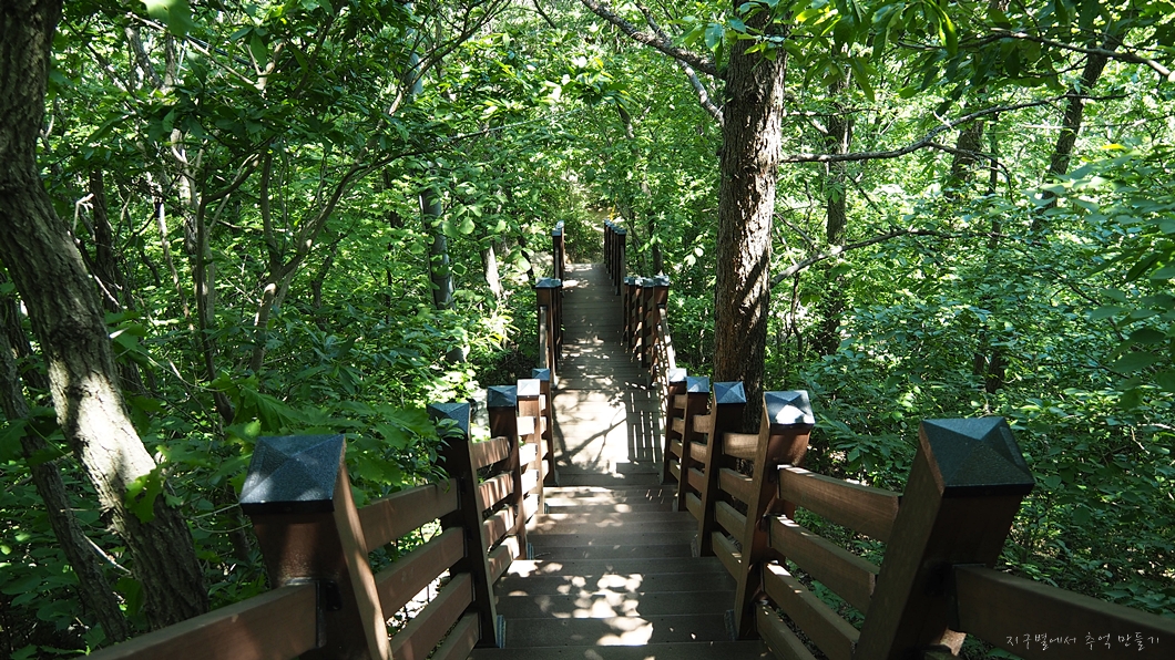 나무 계단길이 불편하게 되어 있네요.