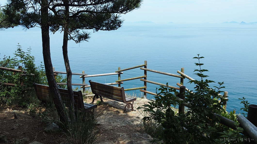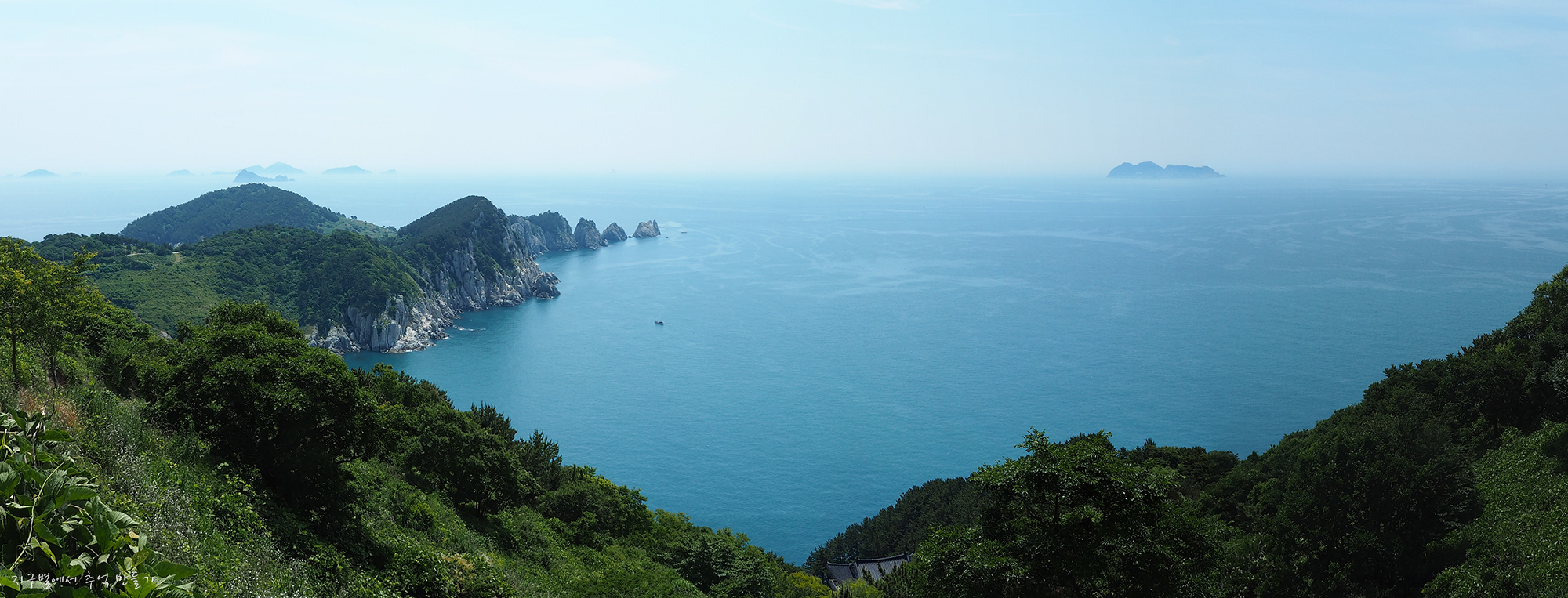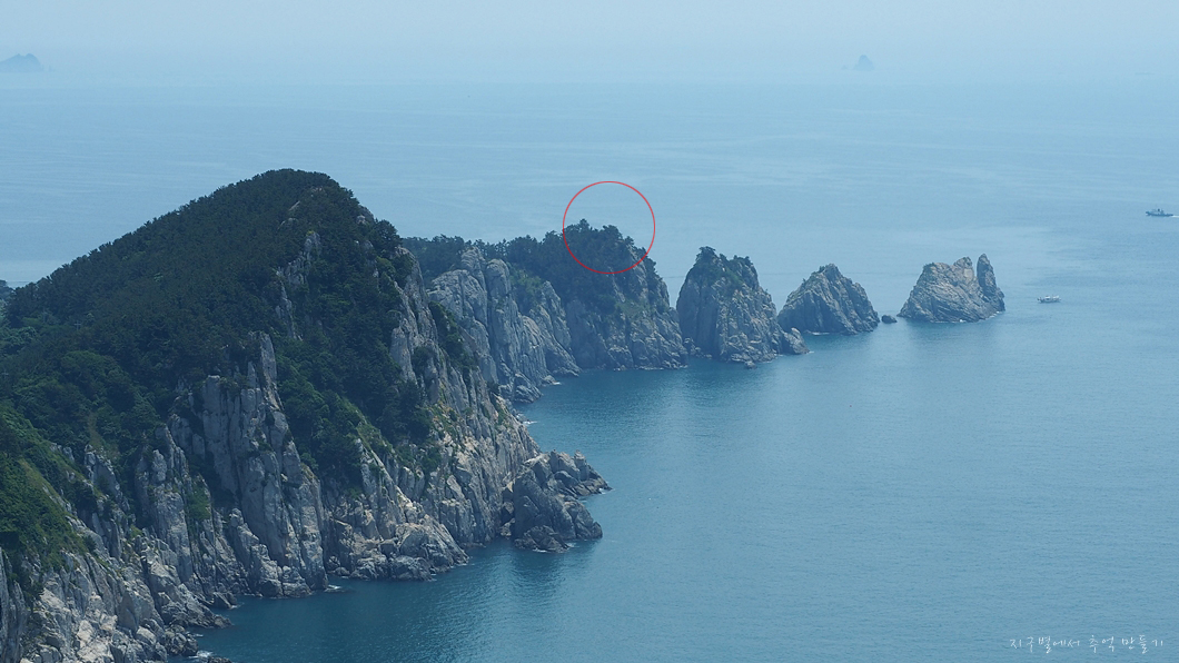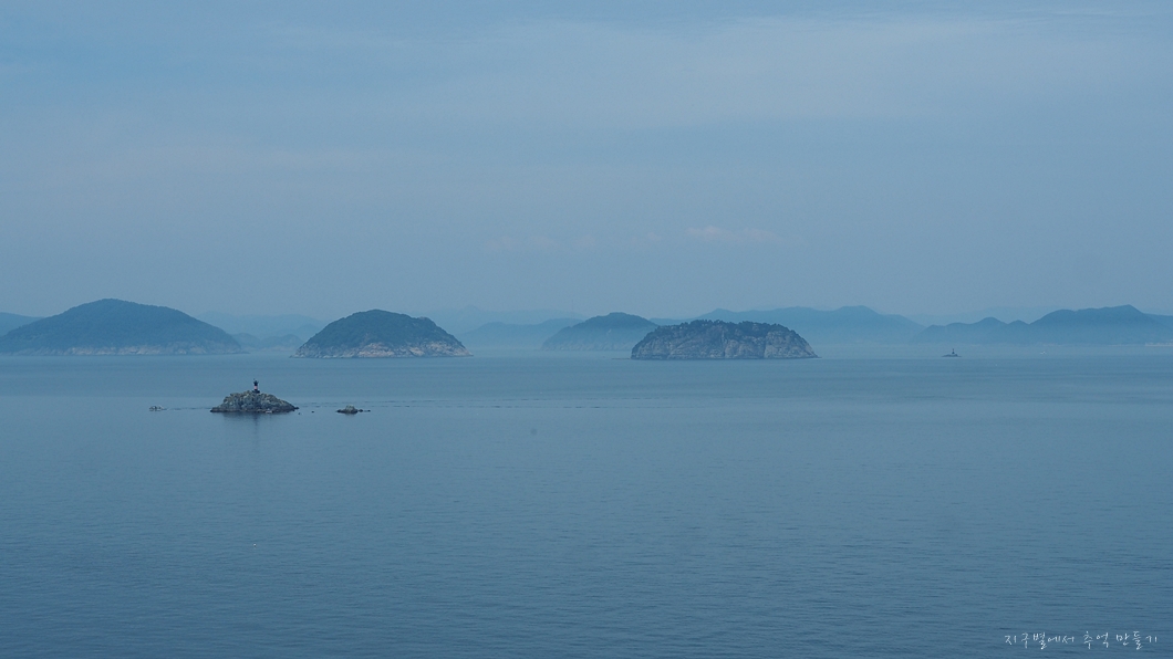 통영방향의 조그마한 무인도들이 조망됩니다.