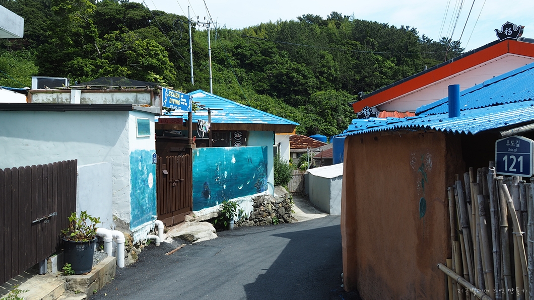 초등학교를 지나 선착장으로 내려가는 길입니다.