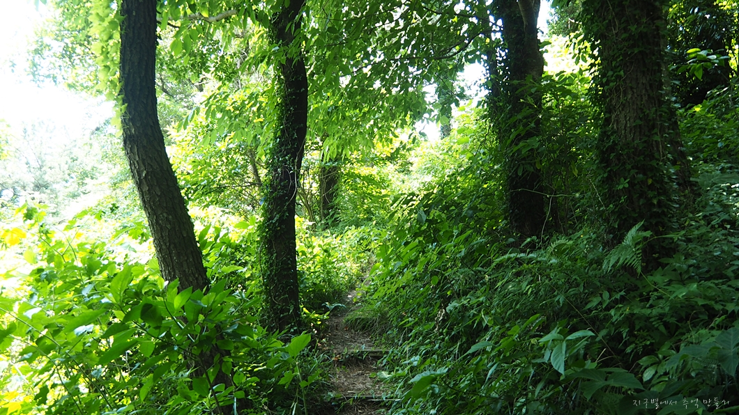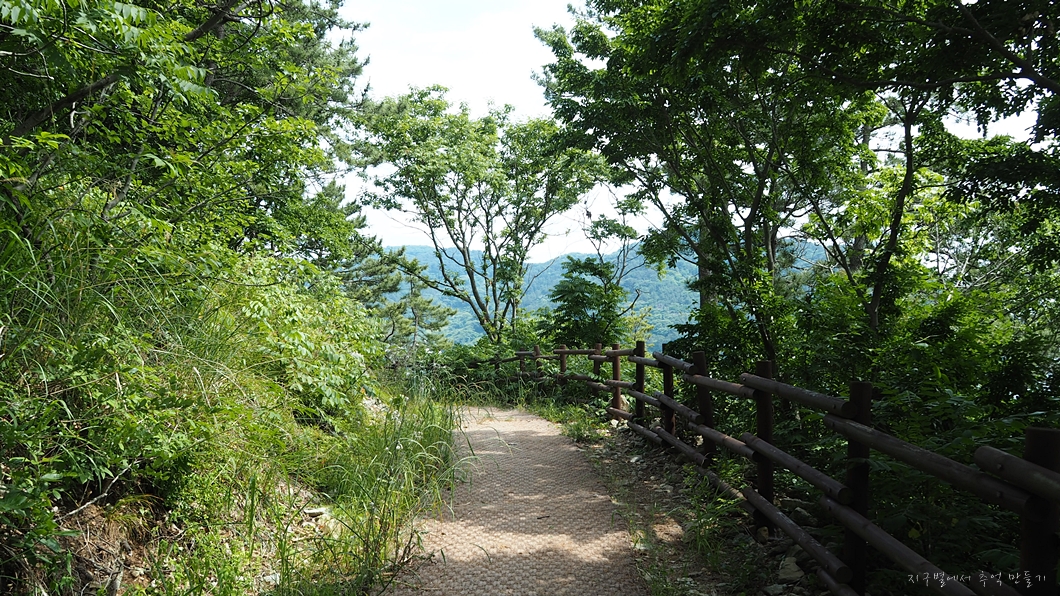 봉우리를 두어 개 넘어서 걸어가는 숲길이 운치 만점입니다.