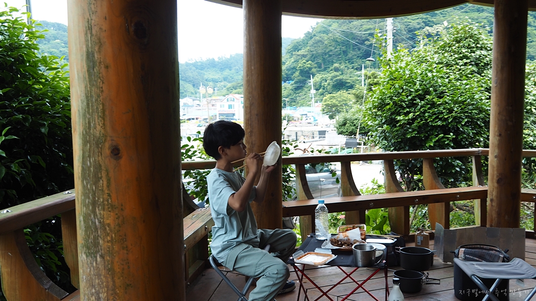 연화항 선착장 한쪽 옆의 정자에서 맛난 점심 식사.