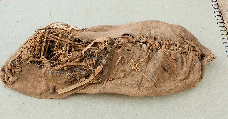 포트 록 샌들(Fort Rock Sandals)로 알려진 이 놀라운 고대 신발은 산쑥나무 껍질을 꼬아 만든 것으로, 평평한 밑창과 발가락을 감싸는 디자인이 특징입니다.