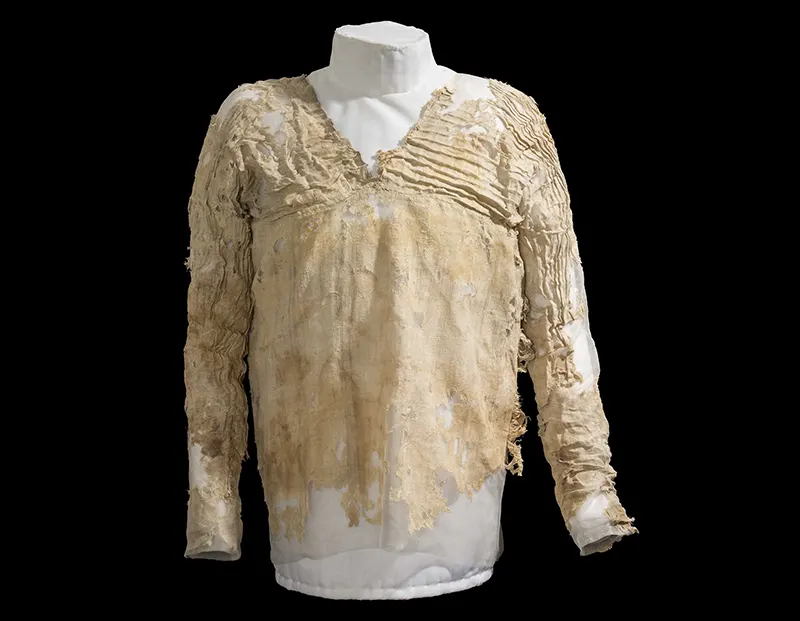 촘촘하게 주름진 소매와 스커트에 꿰매어진 요크가 특징으로 학자들은 이 옷에서 팔꿈치와 겨드랑이에 뚜렷한 주름이 있는 것을 발견했는데, 이는 착용자가 실제로 이 옷을 일생 동안 입고 지냈다는 걸 의미합니다.