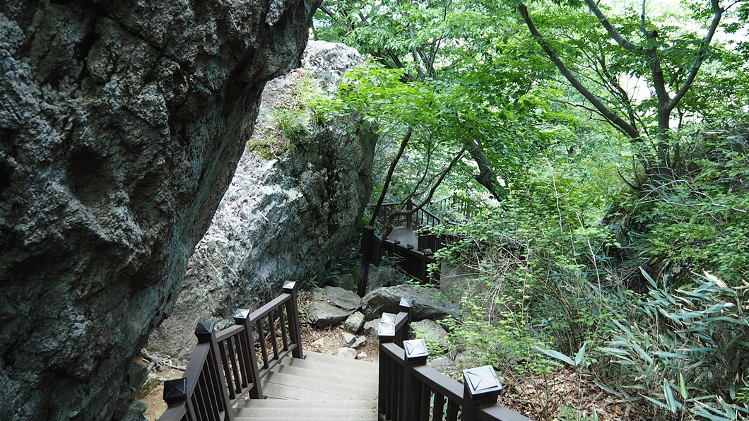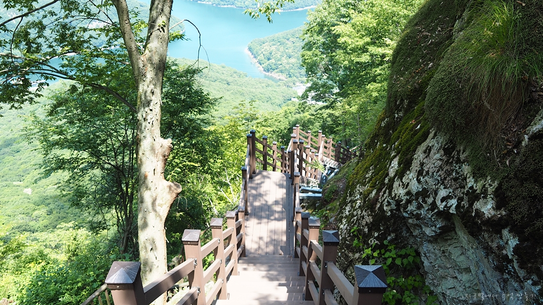 보리암에서 내려가는 1코스는 데크계단 지옥입니다.