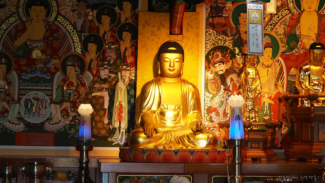 법당에는 근간에 보기 드물게 잘 생긴(?) 석가모니부처님이 자리하고 있습니다.