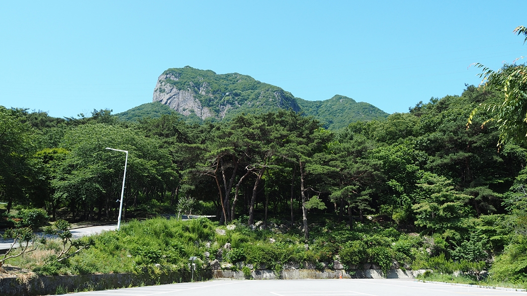 주차장에서 올려다 본 추월산.