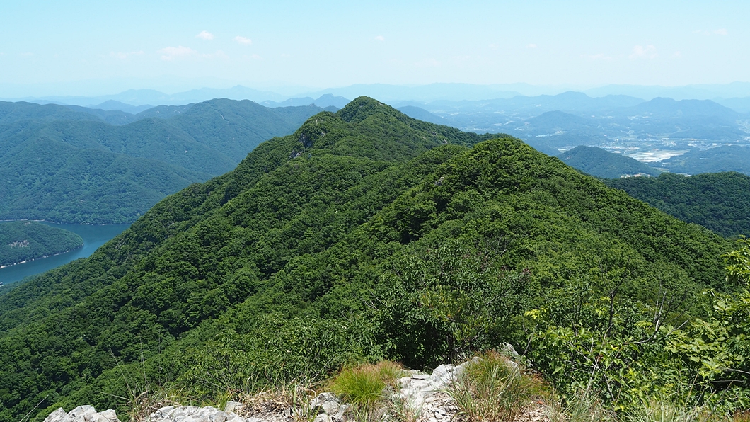 월계리로 내려가는 삼거리 위 암봉에서 조망되는 파노라마 풍경.