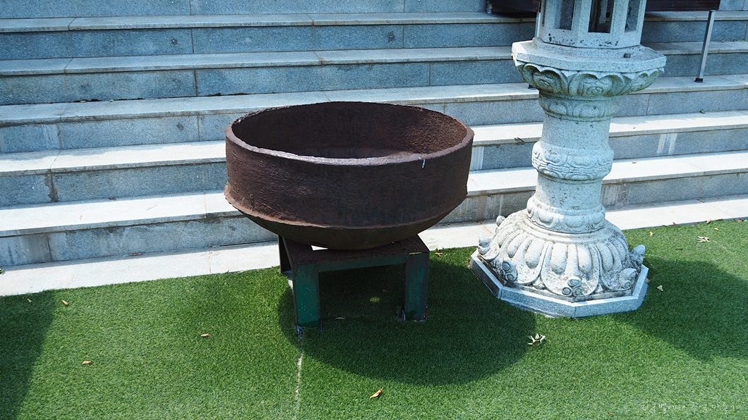 보리암 마당에 놓여져 있는 이 쇠솥의 용도는 방화수 담는 그릇.