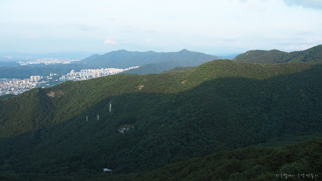 건너편으로 보이는 앞산 전망대와 풍국면.