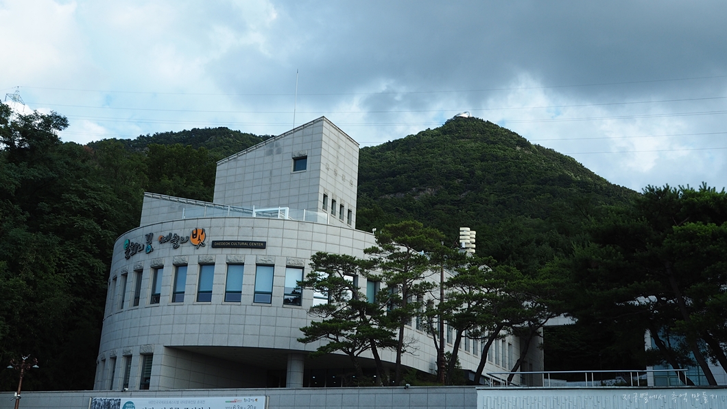 안일사로 내려가지 않고 숲길을 가로질러 내려가다가 우측으로 이동하여 대덕문화전당으로 하산합니다.