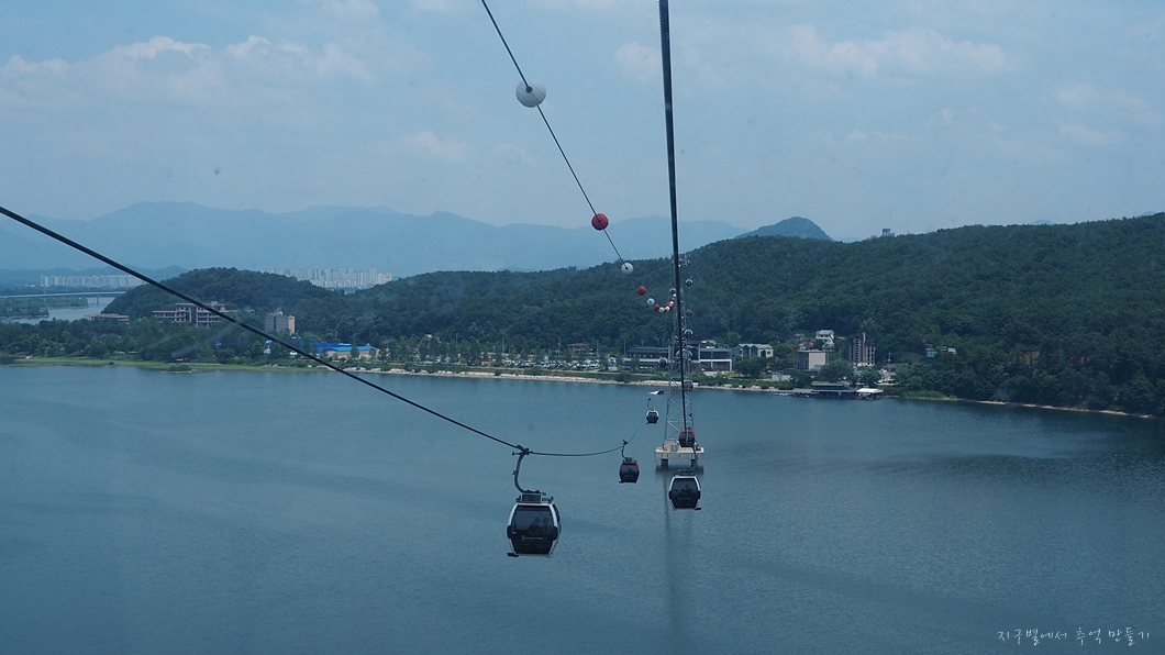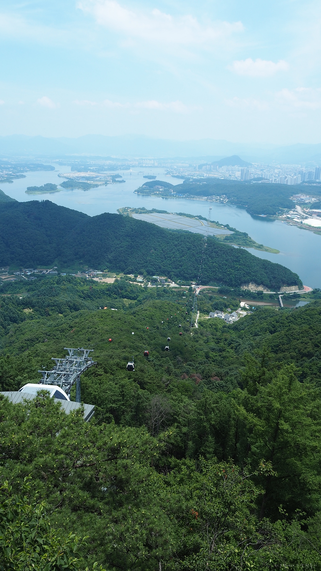 산을 넘고 호수를 건너 이어지는 케이블카 라인.