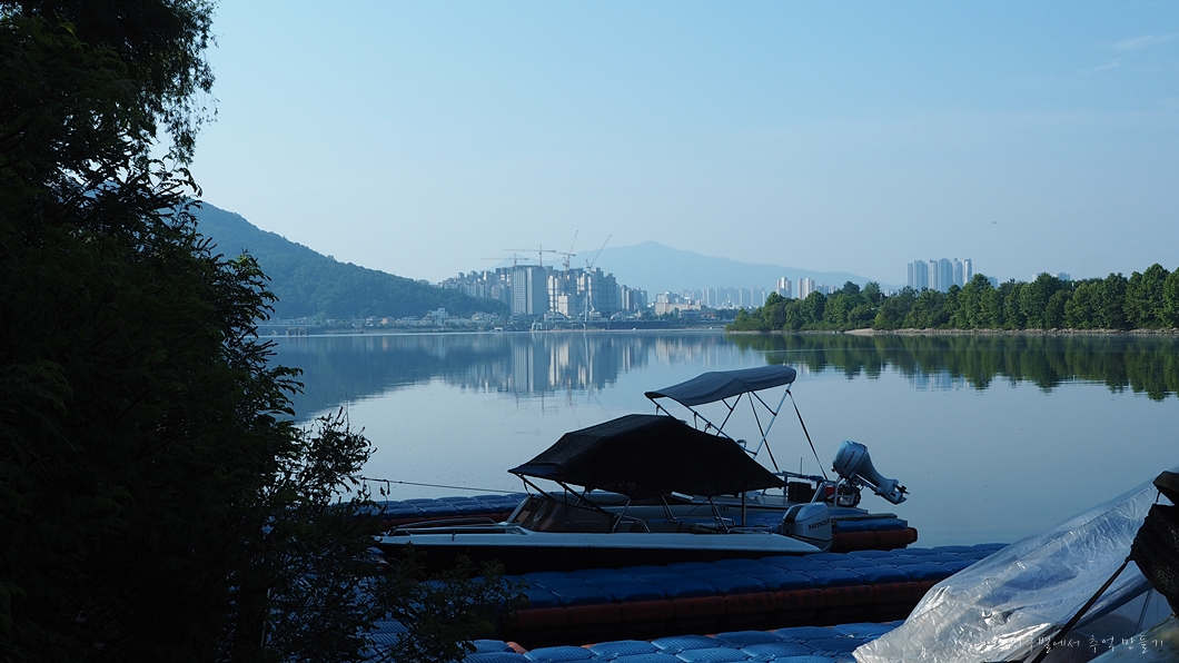 새벽에 도착한 고구마섬에서 차박으로 자고 일어나 내다본 의암호.