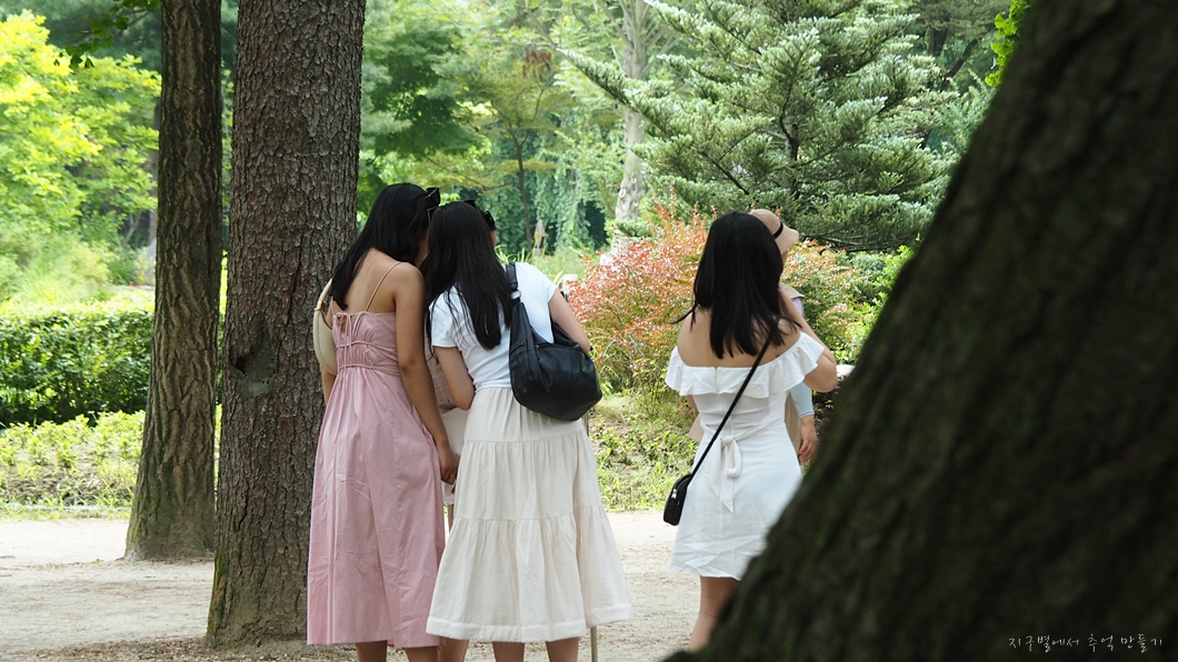 동남아 여성분들이 사진을 많이 찍고 있는데 스타일이 우리랑은 조금 차이가 있습니다.