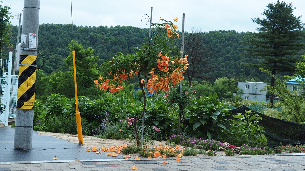 달린 능소화도 예쁘지만 바닥에 떨어진 능소화가 더 그림이 되고 있네요.