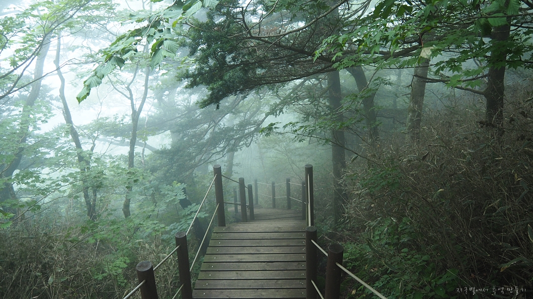 근데 운무로 산이 가리어졌습니다.