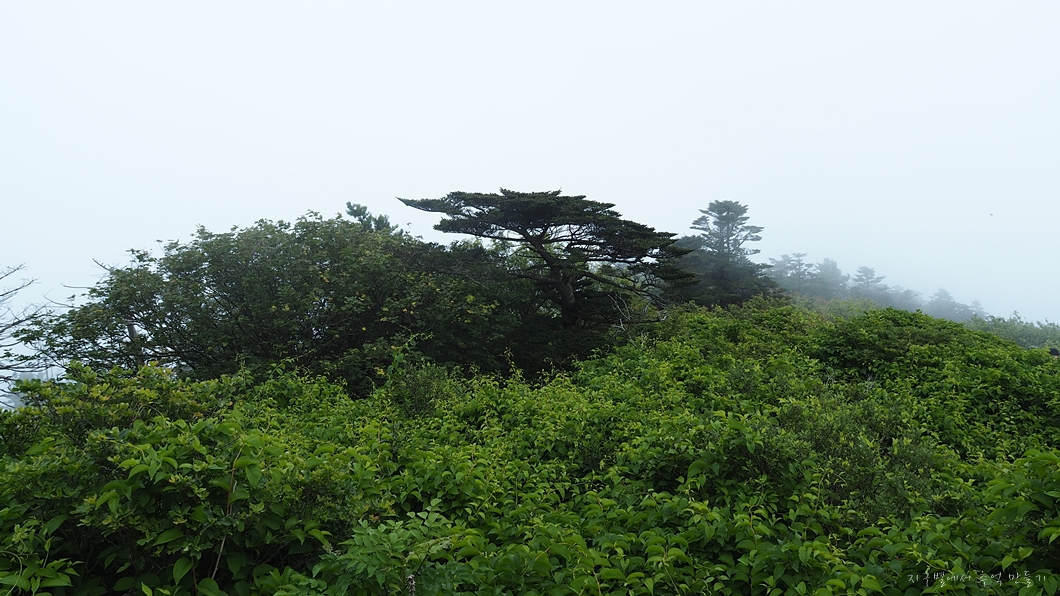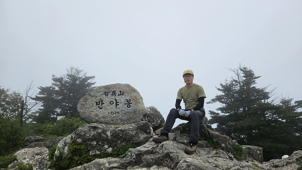 아쉬운 조망이지만 그 대신 한여름 반야봉에서 추위를 느껴보네요.