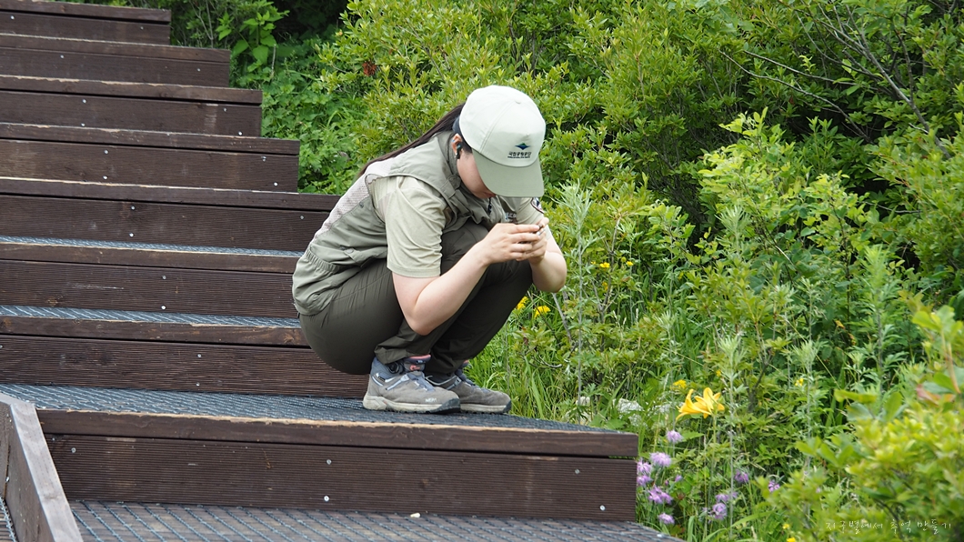 새내기 국공 여직원이 핸폰으로 야생화를 찍고 있네요.