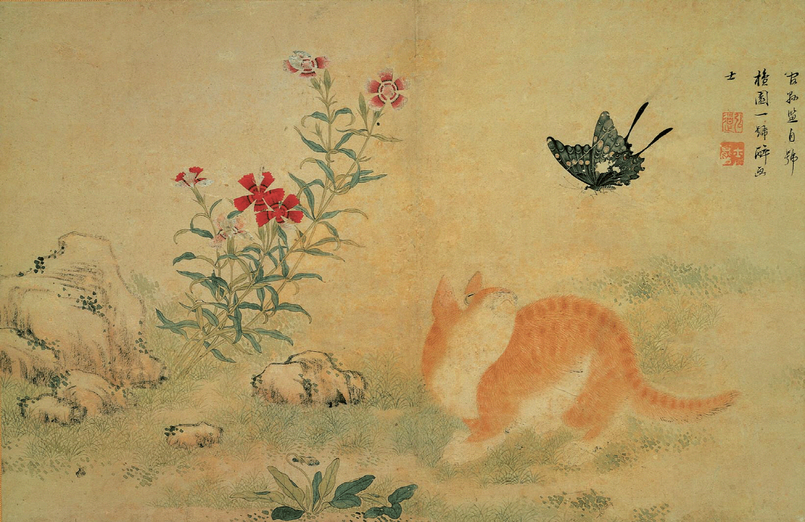 김홍도의 황묘농접도(黃猫弄蝶圖)에 나오는 오랑캐꽃(제비꽃)