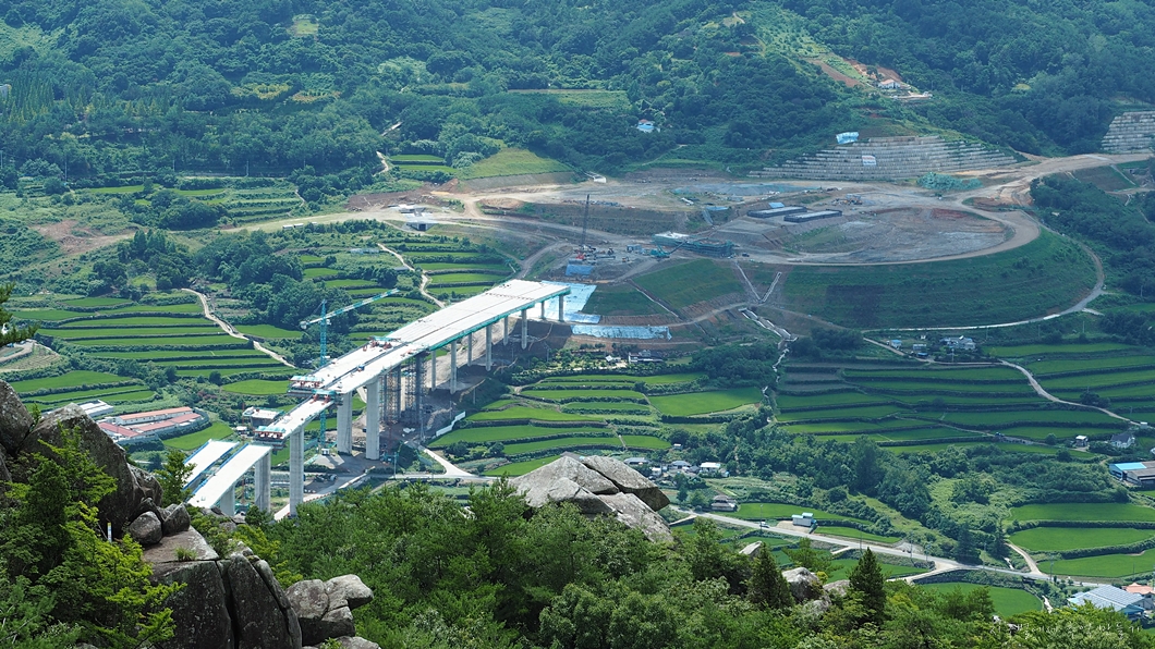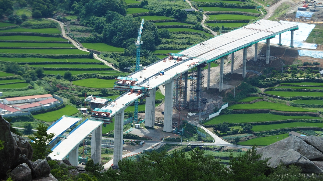 고속도로 연결하는 다리 공사는 양쪽에서 거의 붙을락 말락 하고 있네요.