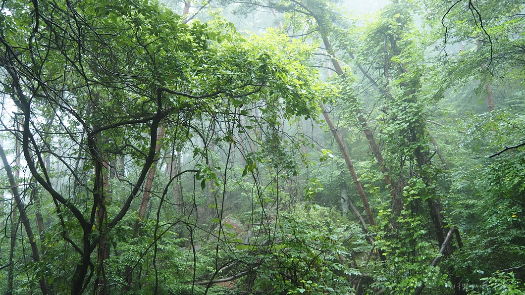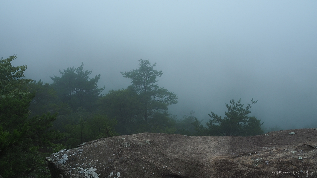 비 온 뒤라 주변은 온통 운무로 가려서 아무것도 보이지 않습니다.
