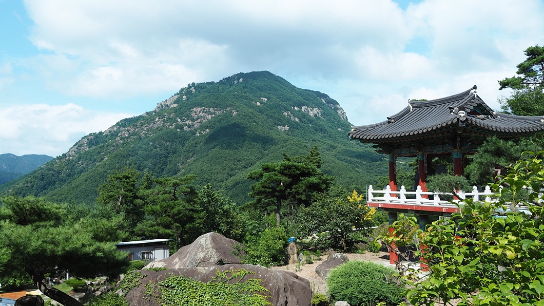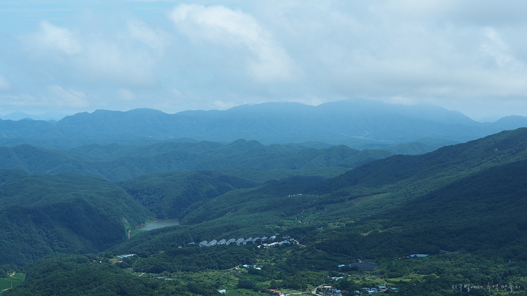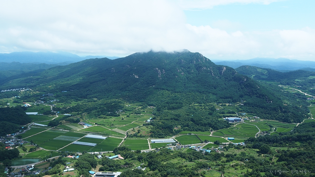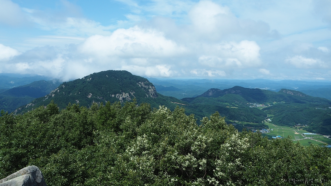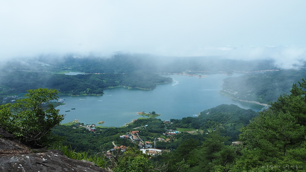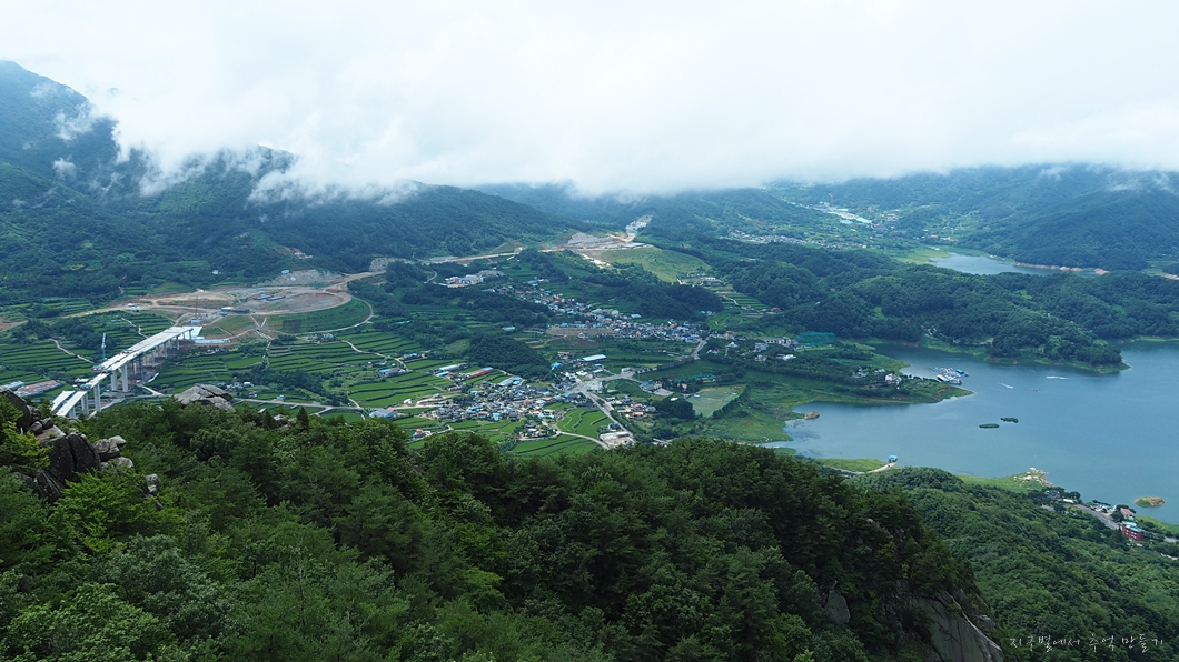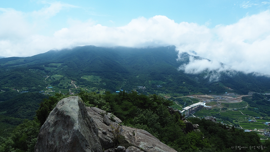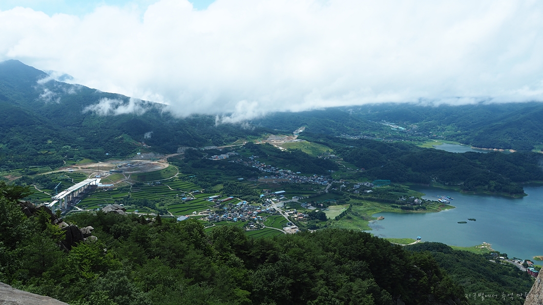 운무가 조금씩 걷혀서 사진 좌측 위로 멀리 월여산이 보입니다.