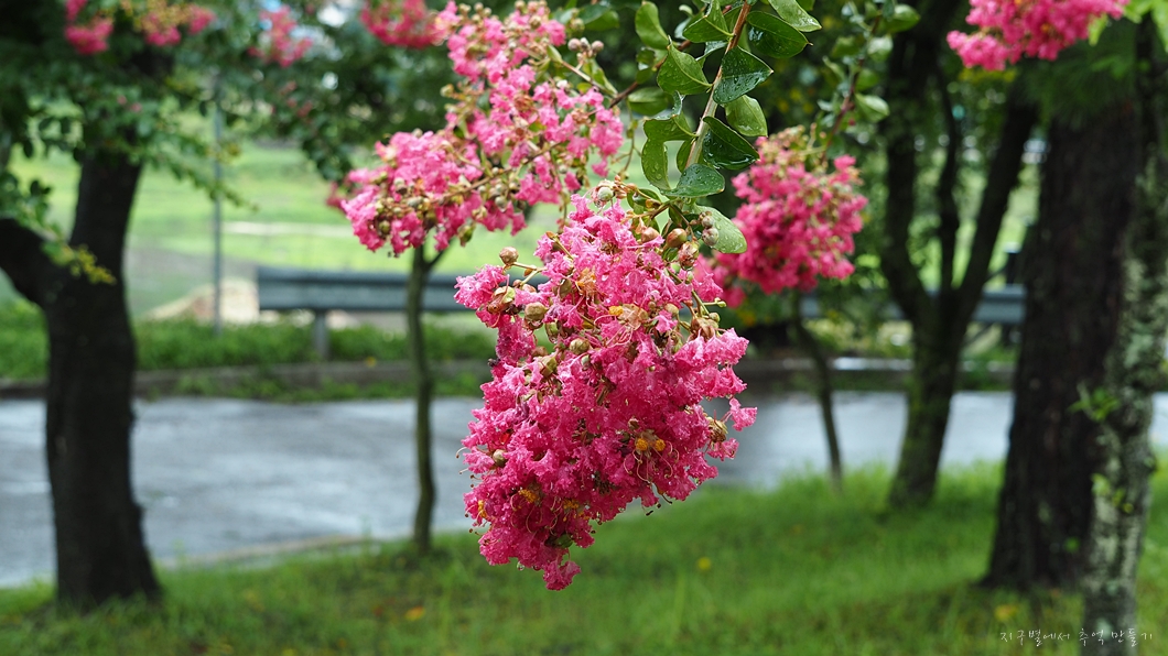 목백일홍이 더욱 붉게 보입니다.