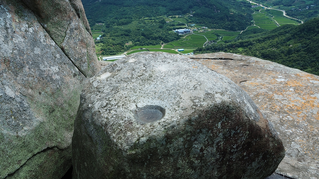 정상에 있는 돌 확입니다.