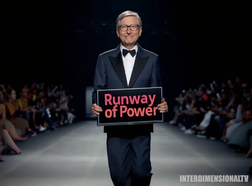 마지막 장면에서 전 Microsoft CEO 빌 게이츠가 랩탑을 들고 런웨이를 걷는데 결국 블루 스크린으로 바뀌네요.